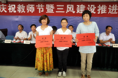 ——学院召开庆祝教师节暨“三风”建设推进会 2012年9月14日下午,学院在1号教学楼1117教室召开庆祝教师节暨“三风”建设推进会。学院领导和全体教师参加了会议。会议由学院执行院长吕振合主持。
