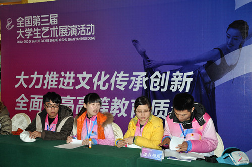 以“青春使命”为主题的全国第三届大学生艺术展演活动于2月7日—14日在杭州举行,浙江长征职业技术学院从全院大学生中选拔了有才兼备的53位高素质志愿者积极参与了本次活动。其中8名志愿者对口接待了宁夏代表团,45名志愿者为组委会通用志愿者即组委会工作人员。
