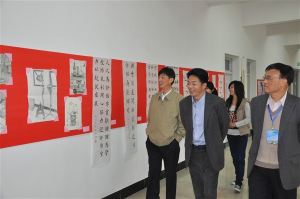 当专家组一行来到我院大学生创业园时,组长杨应崧教授与创业学生就创业过程中的具体事项和感兴趣的话题进行了亲切交谈。专家组还参观了我院“异彩纷呈”大学生作品展,专家组副组长陈丽能教授对学生书画作品进行了专业点评。