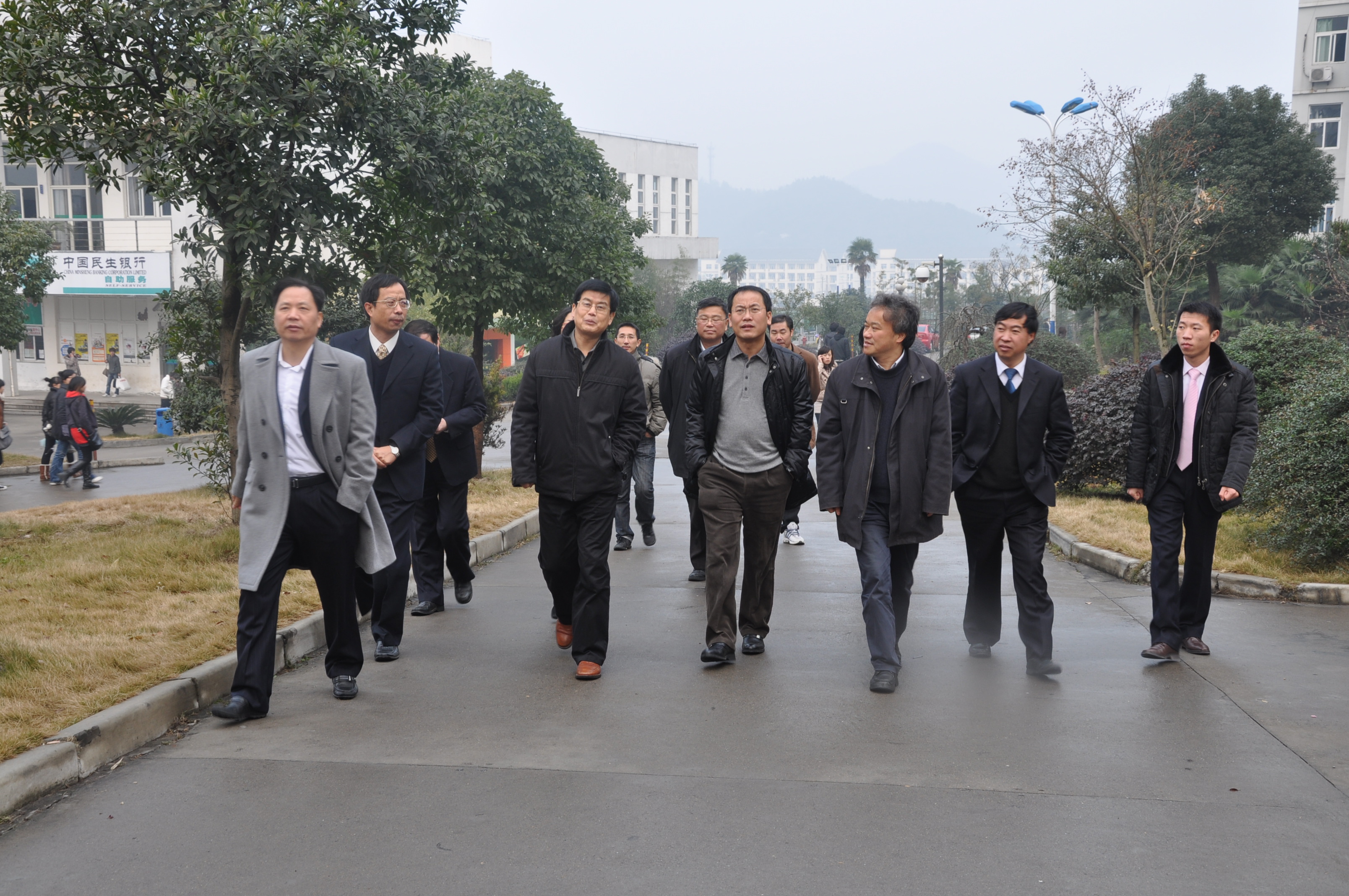 专家组成员在院领导班子的陪同下参观校园
