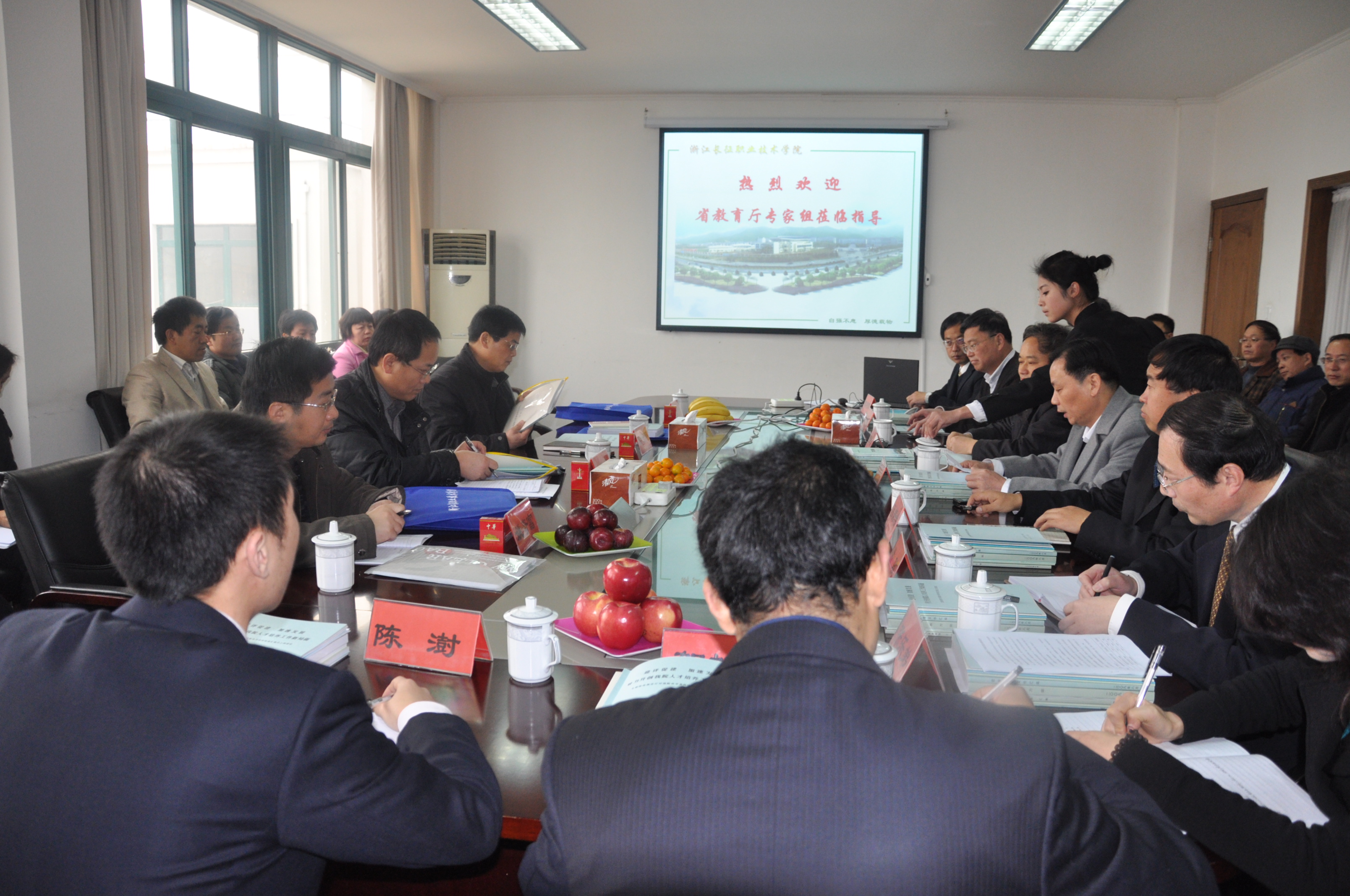 12月25日,以湖州职业技术学院院长胡世明为组长,省高教处副处长金仁康、浙江工商职业学院副院长姚奇富、浙江商业职业学院示范办主任李贤政为组员的省教育厅高等职业院校人才培养工作评估办学条件审查专家组莅临我院进行基本办学条件审查。