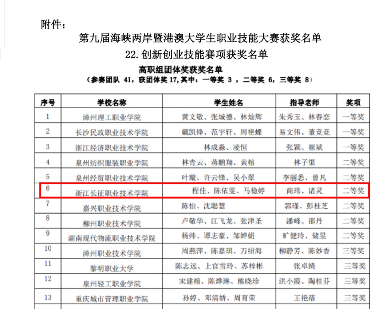 近日,第九届海峡两岸暨港澳台大学生职业技能大赛圆满落下帷幕。由21大数据与财务管理(五年制)3班程佳和2班陈依雯、马稳婷三位学生组成的参赛团队荣获高职组团体二等奖(指导老师:商玮、诸灵)。