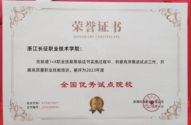 近日,由教育部指定的第三方培训评价组织——新道科技股份有限公司公布了2023年度全国试点工作优秀单位及先进个人的获奖名单,我校被评为2023年度“1+X”证书全国优秀试点院校。