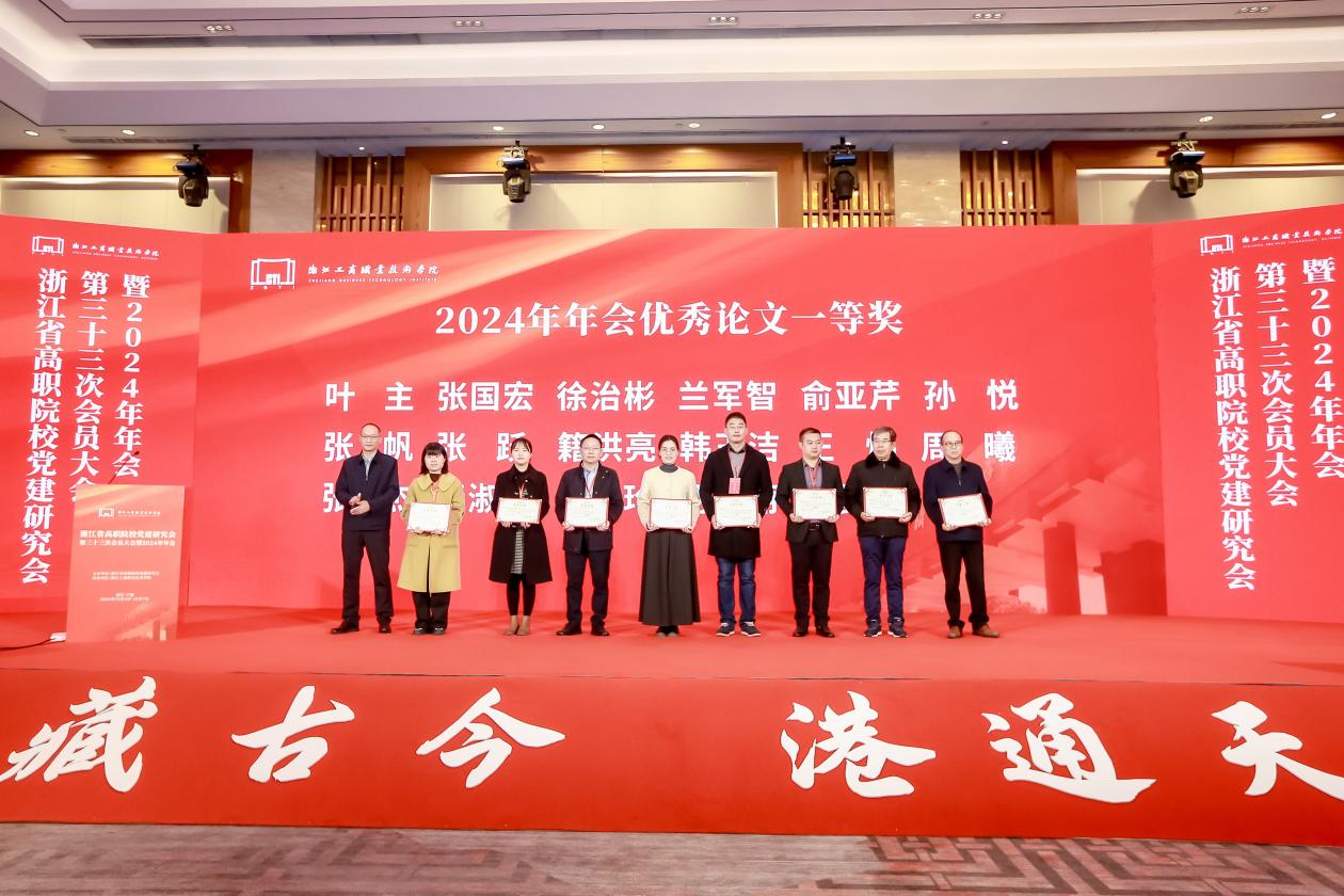 近日,由浙江省高职院校党建研究会主办的浙江省高职院校党建研究会第三十三次会员大会暨2024年年会在宁波顺利召开,全省50所高职院校200余名代表参加会议。研究会理事、学校党委副书记吴有恩和我校获奖代表参会。