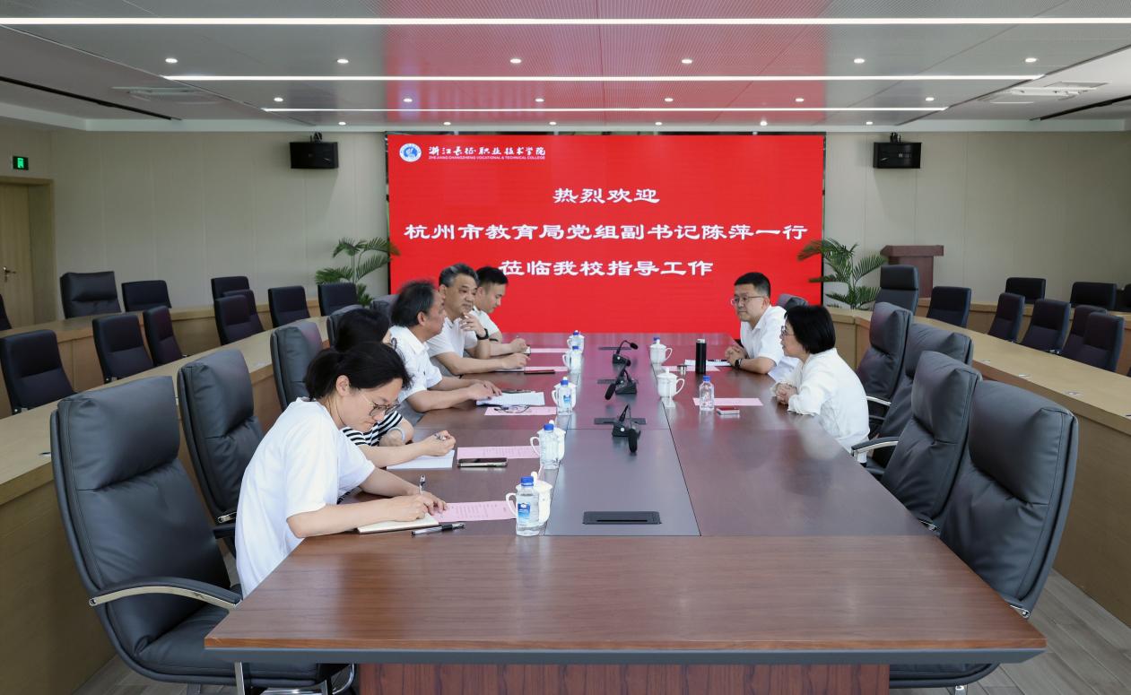 5月19日,杭州市委教育工委专职副书记、市教育局党组副书记陈萍带队来我校指导工作。校党委书记王其军出席调研座谈会,党委副书记吴有恩,党委委员、组织部长吴珏瑛、党办副主任李江波,市教育局组织处处长李衍增参加座谈会。