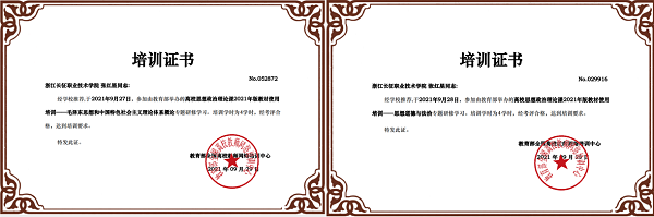培训历时三天,全体思政课教师收看了《马克思主义基本原理》《毛泽东思想和中国特色社会主义体系概论》《中国近现代史纲要》《思想道德与法治》《新时代中国特色社会主义理论与实践》《中国马克思主义与当代》等6种高校思政课程的专题培训。通过培训,思政课教师更加精准地把握了高校思政课2021年版教材的指导思想、基本精神、核心内容、修订重点和难点等。全体教师全部通过线上考试,并获得电子培训合格证书。