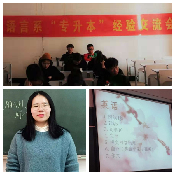为了增加同学们对专升本考试的认识,明确自己的学习方向和备考策略,11月28日下午3点,应用语言系邀请以优异成绩成功升入浙江财经大学的2018届商务英语专业毕业生丁梦嫣在2107教室与2016、2017、2018级同学们分享专升本经验。