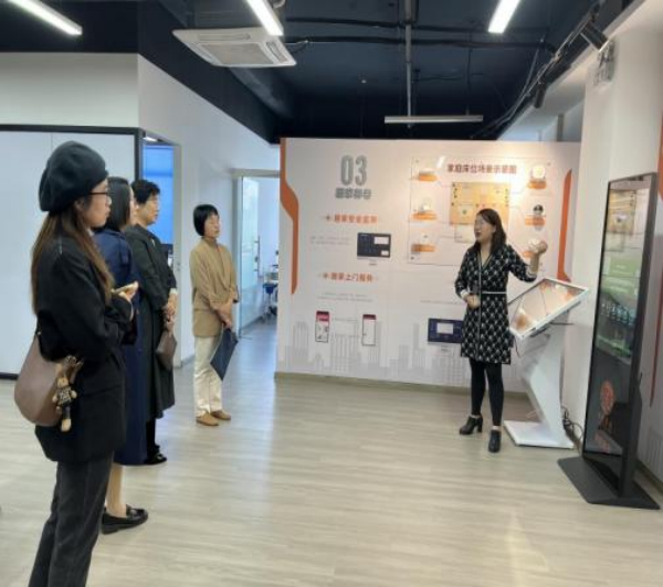 金色年华集团总裁陶巧丽向我校教师详细介绍了金色年华的企业发展历程、业务模式和分布情况,并表示养老产业正处于快速发展阶段,健康老龄化的提出使老年护理人才的需求日益旺盛,金色年华深耕养老行业多年,积极探索医养康养融合发展之路,对有医护专业背景的人才十分欢迎。祖淑梅在听取了陶巧丽的介绍后,对金色年华的业务模式和发展给予了充分的肯定,并表示护理与健康学院旨在培养“一专多能”的T型护理人才,在学生的职业规划中,除了医院,未来医养结合养老机构、社区护理站、养老、健康管理企业等也将成为学生就业的重要方向。座谈会上,双方还从医护康养行业现状、未来需求、护理职业发展路径三方面,进行了深度细致的探讨。随后,在集团工作人员的带领下,我校师生参观了金色年华集团仓前街道创景社区养老服务中心及果岭社区幸福满仓综合体项目。