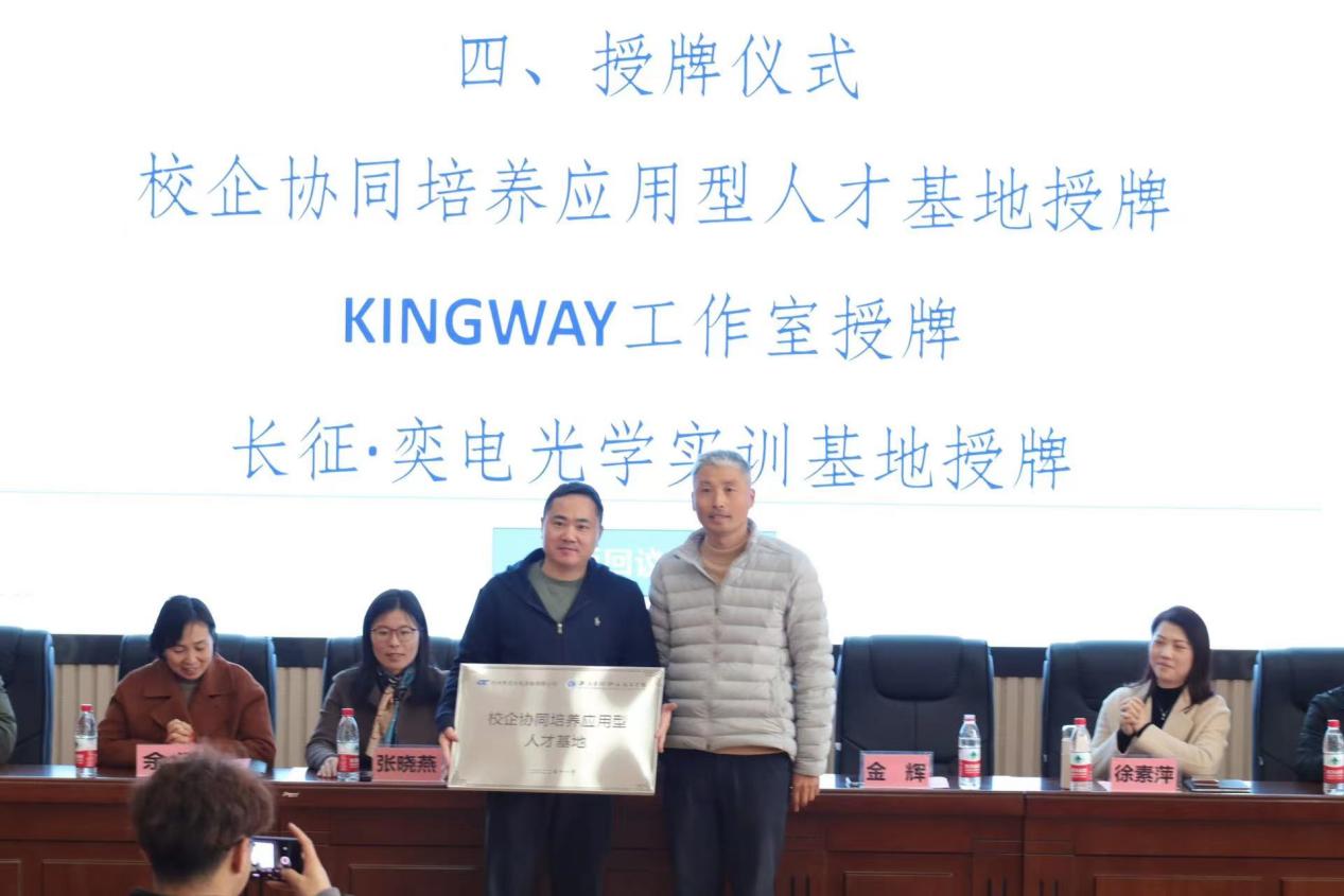 近日,浙江长征职业技术学院与杭州奥克光电设备有限公司“奥克学徒班”开班仪式在第二报告厅顺利举行。杭州奥克光电设备有限公司董事长金辉、副总经理徐素萍、总工程师王鹏飞、人事部总监陆盛祎、筹备专员汤德民、戴政旭,学校教务处副处长吴少俊,智能技术学院副院长张晓燕、党总支副书记余泓,物联网应用技术专业教研室主任胡军,电子信息工程技术专业教研室主任李君等及物联网应用技术专业学生参加了此次开班仪式。