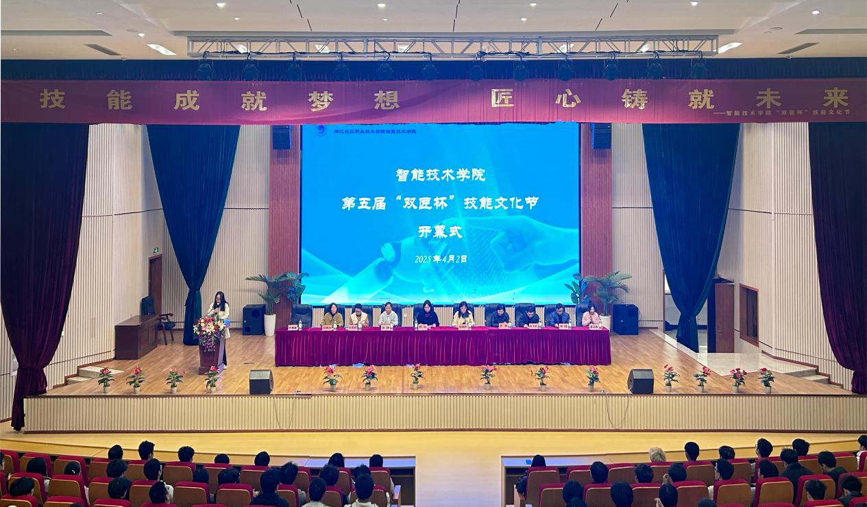 近日,智能技术学院第五届“双匠杯”技能文化节在第一报告厅开幕,智能技术学院党政领导班子、500余名师生代表参加了开幕式。开幕式由智能技术学院党总支副书记佟珊珊主持。