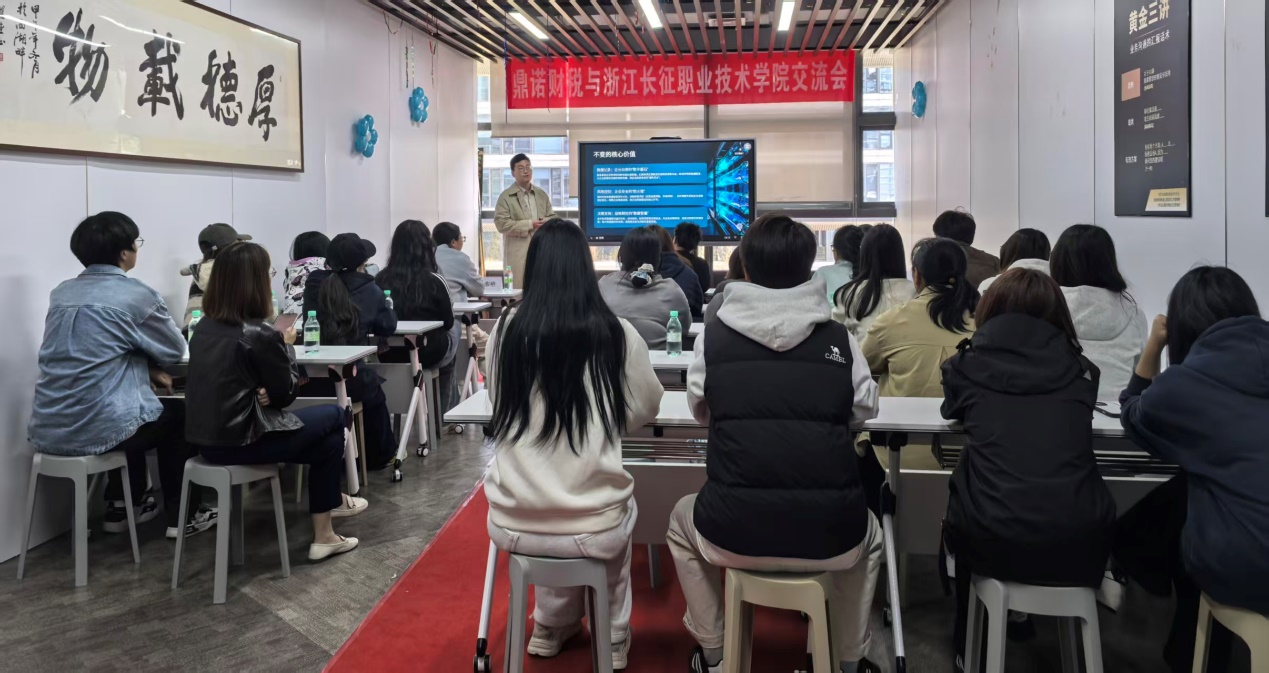 参观结束后,公司高级财税讲师童明为同学们带来专题讲座。讲座围绕财税行业发展前景、会计专业职业发展趋势、企业核心岗位需求等核心内容展开,同学们认真聆听、积极思考,互动交流环节中踊跃提出关于专业学习、职业规划的疑问,童老师逐一耐心解答,为同学们破解职业困惑、明晰专业学习方向提供了专业指导。