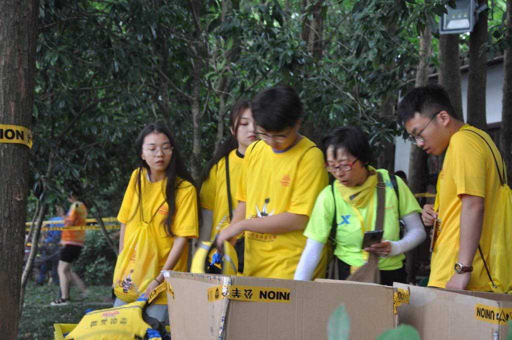 我校志愿者分为7个小组,分别是:主会场次序引导组、裁判组、检录组、机动组、引导和召集进场组、后勤组、沿线志愿者组。主会场次序引导组的志愿者负责维持开幕仪式和表演期间岸边的秩序。裁判组的志愿者负责辅助公羊会的裁判记录、报备和核对分数。检录组的志愿者是在水上浮台工作的,主要是保证参赛人员救生衣穿戴正确,等待参赛结束的龙舟,帮助参赛人员安全上下龙舟。机动组的志愿者负责救生衣的收集和发放工作。引导和召集进场组的志愿者负责赛前寻找所有参赛队伍,并且引导至参赛地点。后勤组志愿者辅助公羊会负责人为所有参赛队伍和志愿者发放午餐,引导参赛人员寄存物品。沿线志愿者负责在湖边维持观众观看比赛秩序,提醒观众远离危险水域以及指引主会场位置的工作。