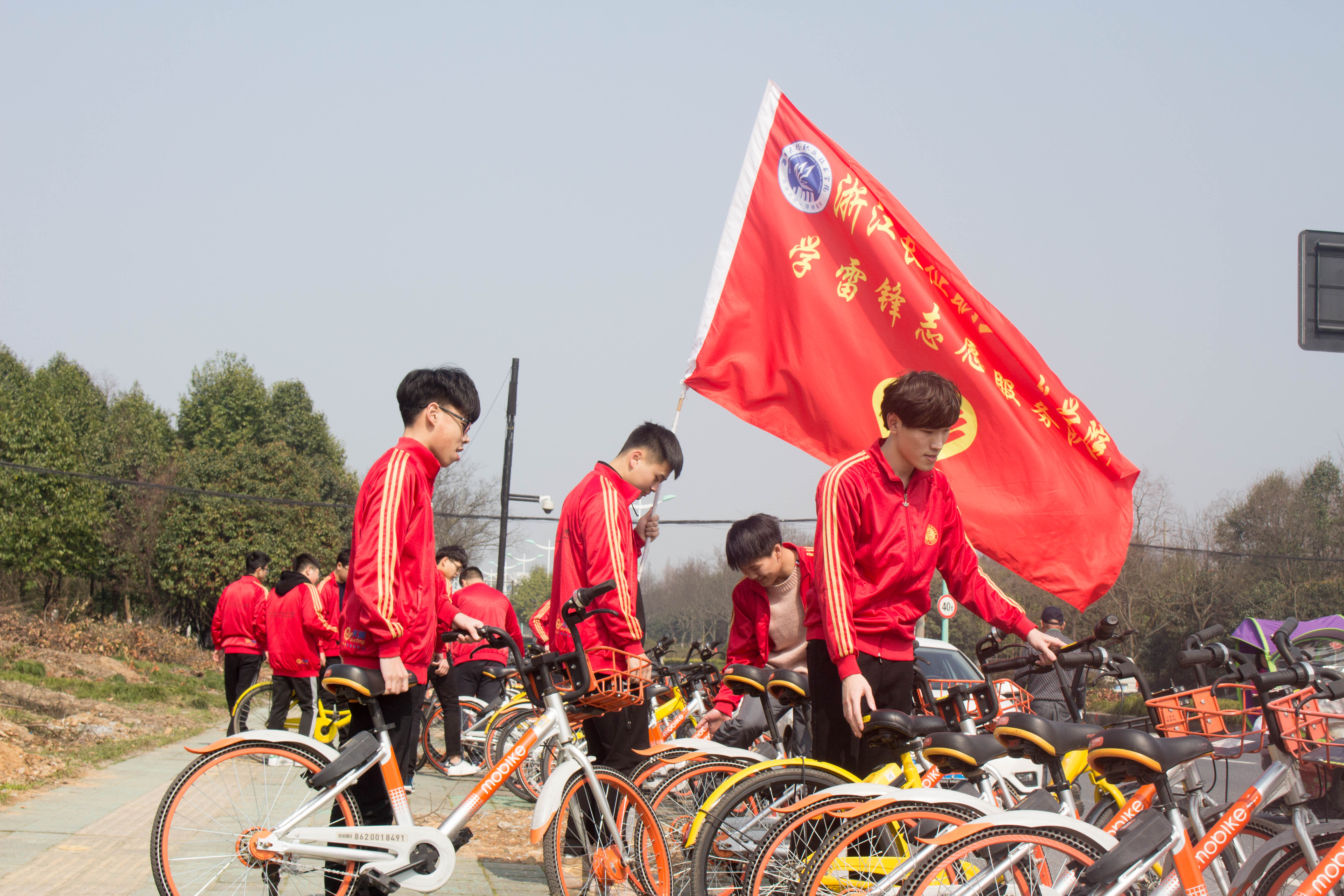 学雷锋志愿服务队分为两组,一组为学校体育馆及活动室打扫卫生、整理物资,清扫看台区域卫生、擦拭椅子等;另一组积极为学校周围公交站、公共自行车点清理垃圾,去除“牛皮癣”小广告,同时将摆放散乱的共享单车排列整齐。志愿者热情认真的工作身影成为了校内外一道亮丽的风景线。
